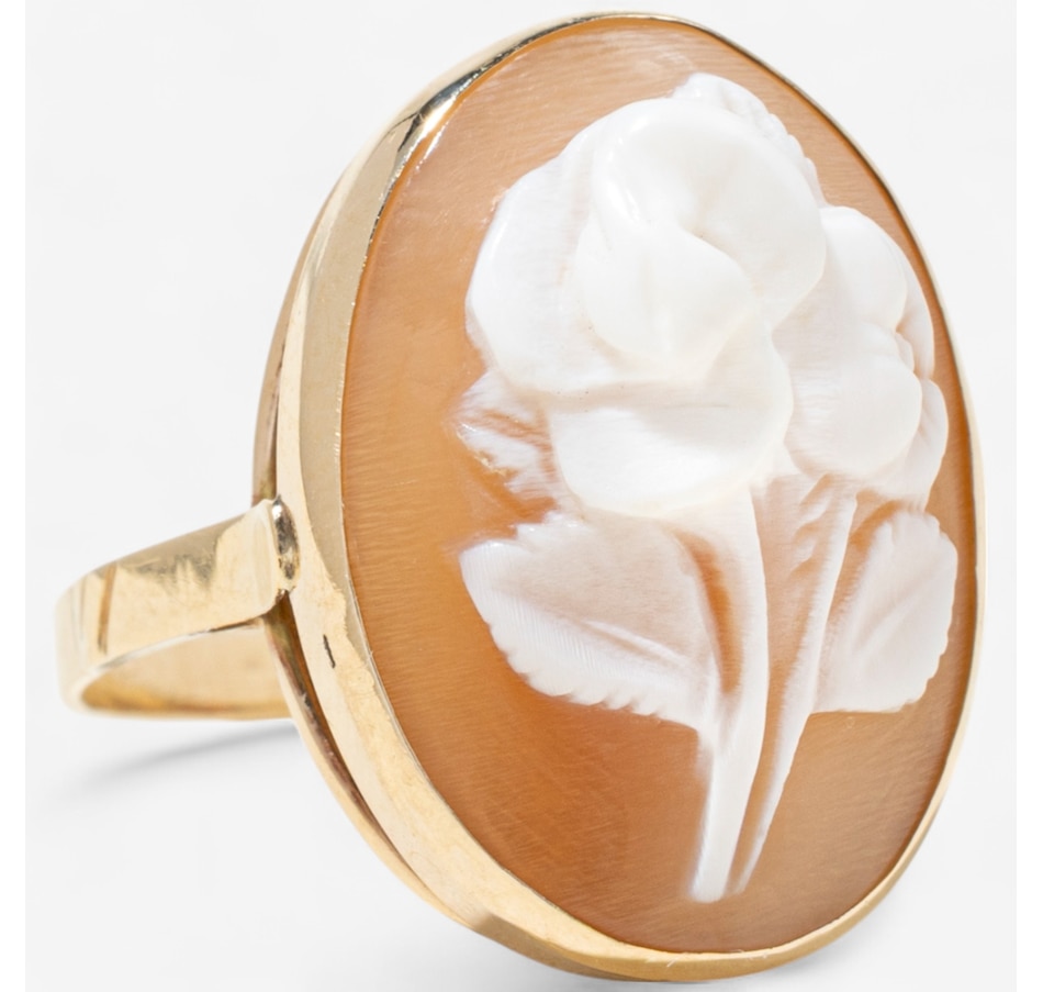 Cameos have long held a cherished place in the history of jewellery, their popularity flourishing during the Victorian era. Queen Victoria herself was a devoted collector, inspiring a surge of demand across Europe. In the 19th century, floral motifs were especially meaningful, often used to convey sentiments when words were left unspoken. Flowers like those carved into this cameo were more than mere decoration; they were tokens of affection, mourning, or memory, imbued with the silent language of the heart.
