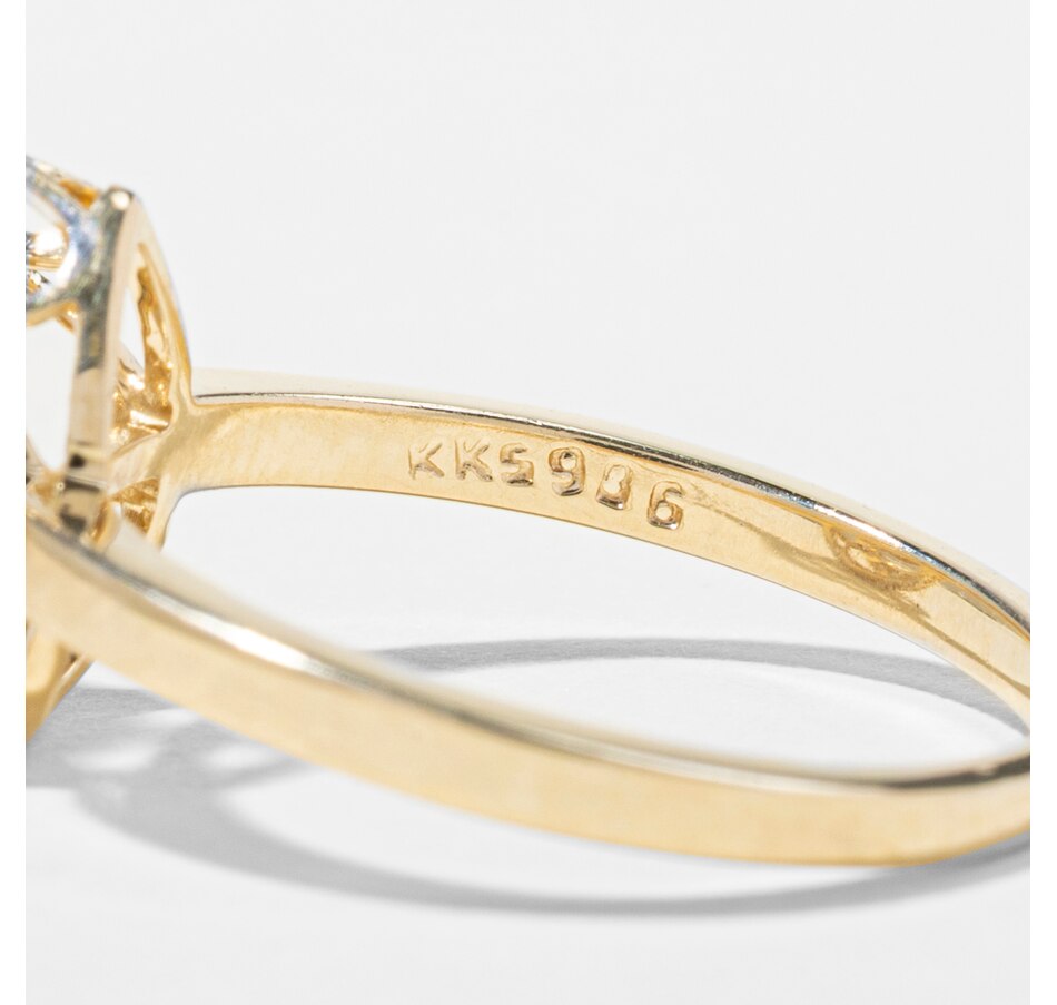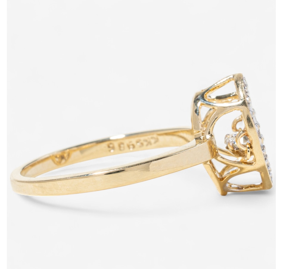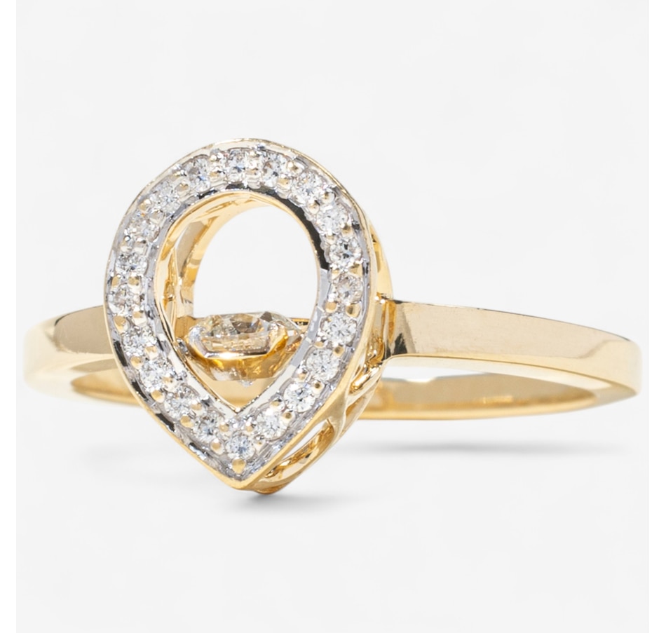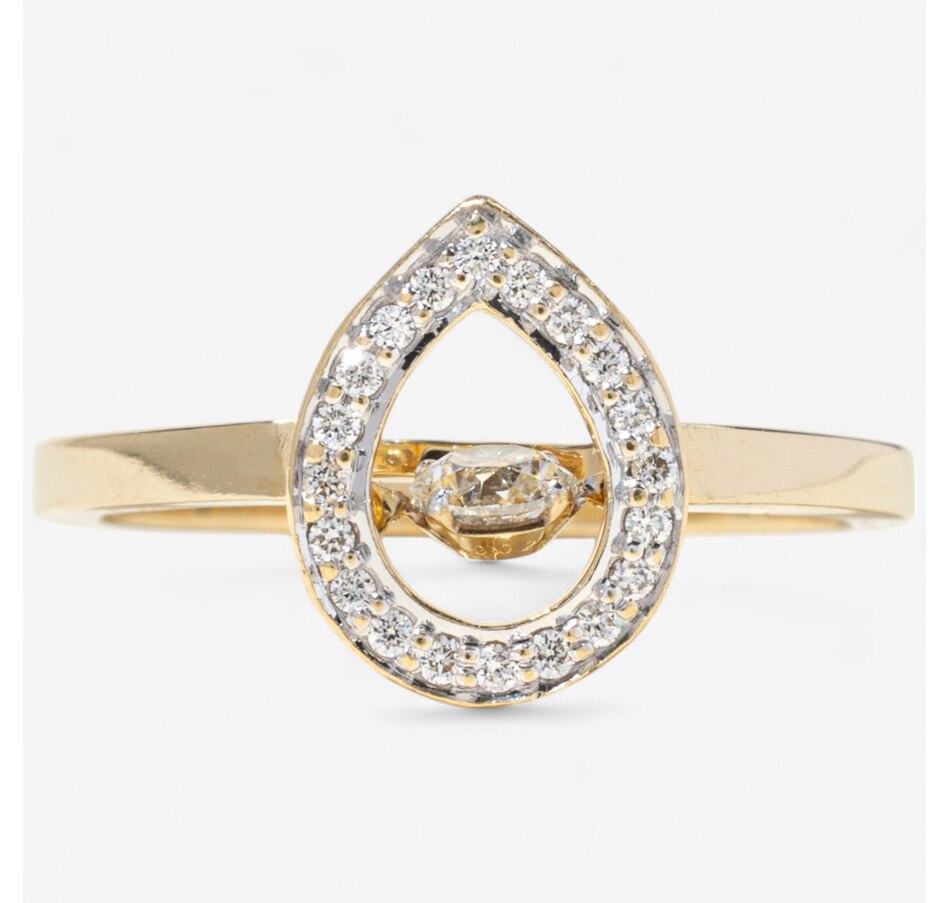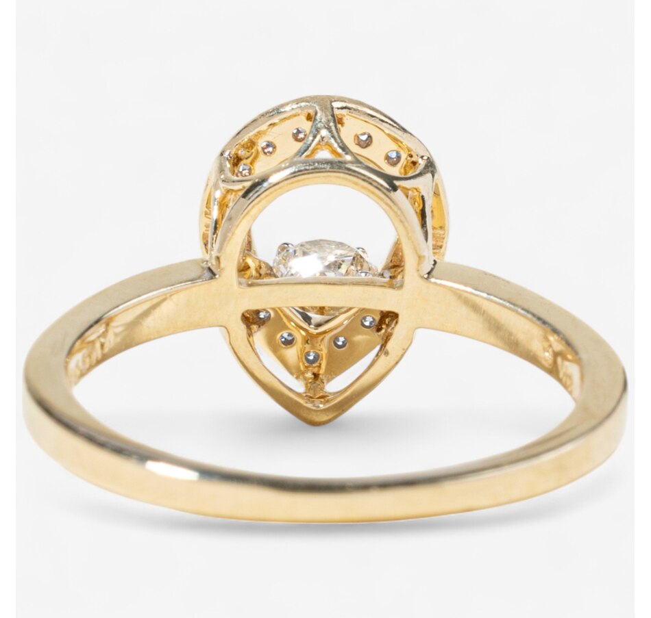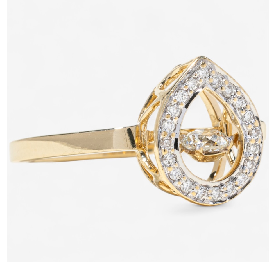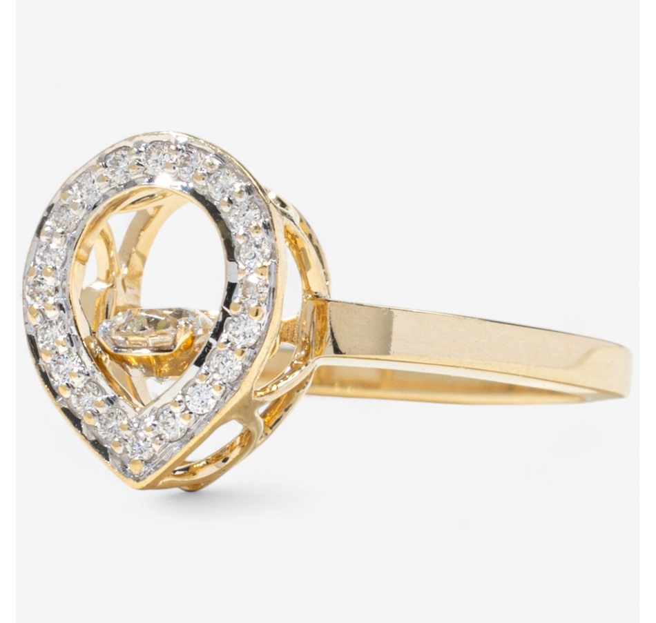 14K Yellow Gold Dancing Diamond Ring with a Pear Shaped Silhouette