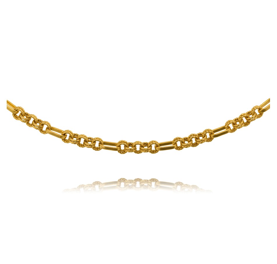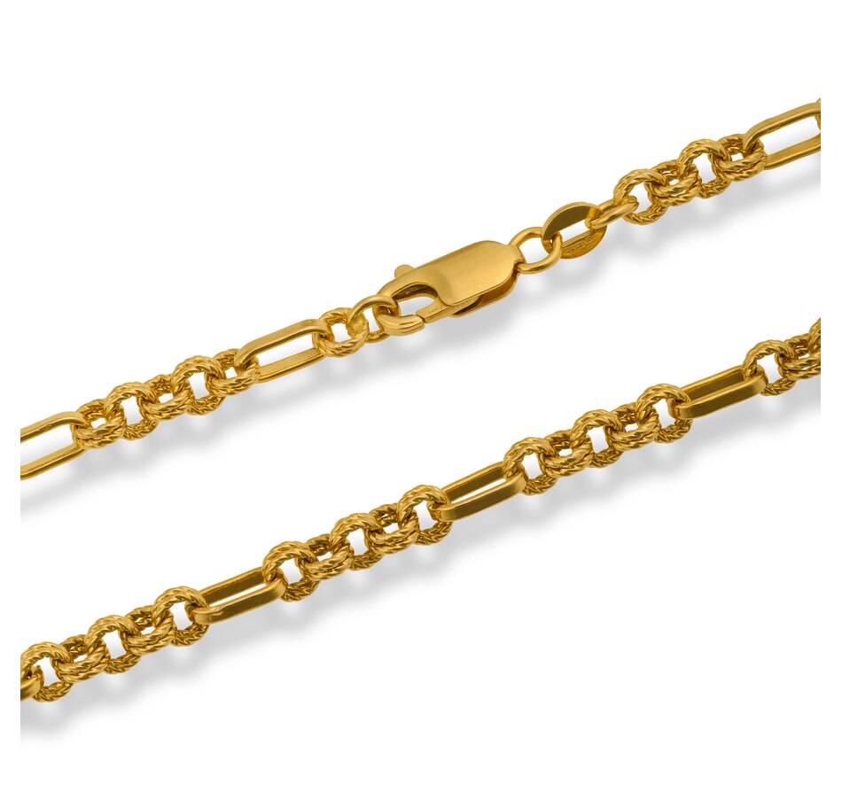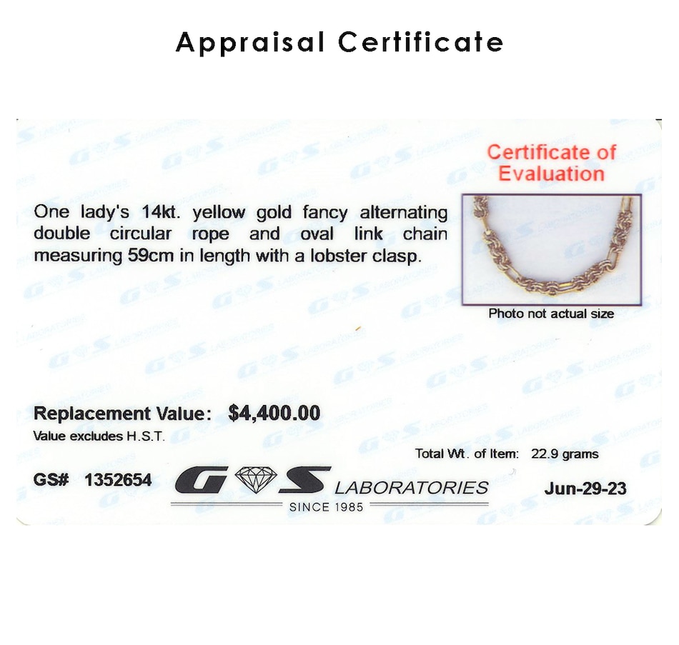 14K Yellow Gold Fancy Alternating Circular Rope and Oval Link Chain