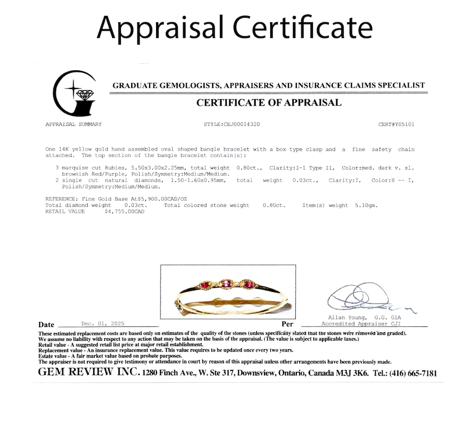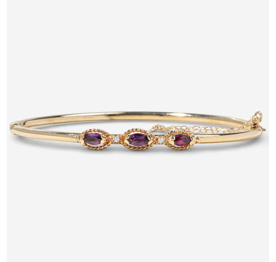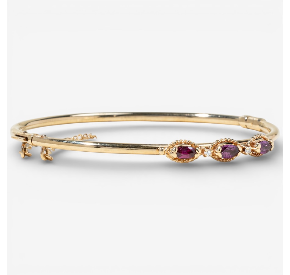 14K Yellow Gold Marquise Ruby and Diamond Bangle Bracelet