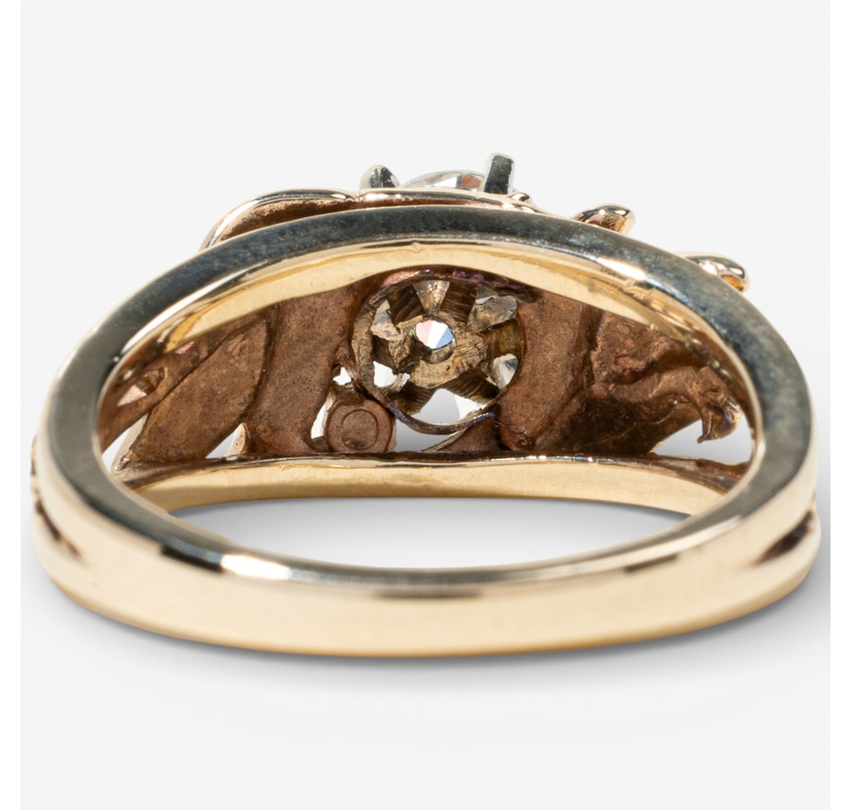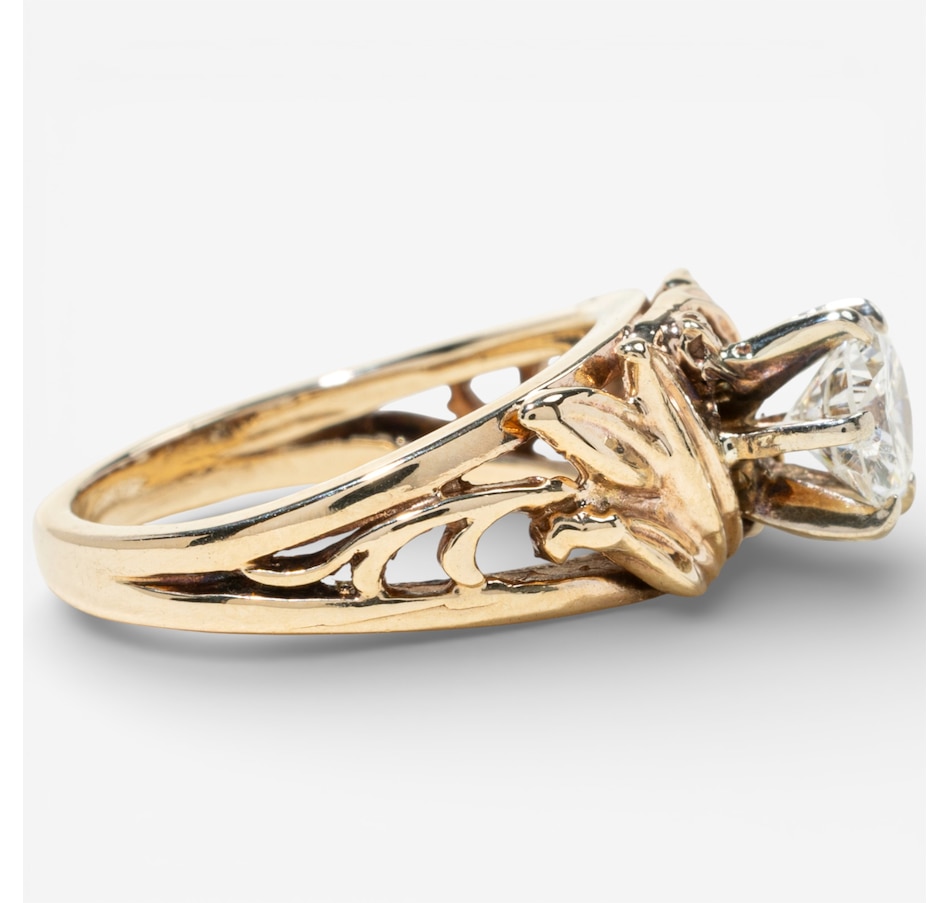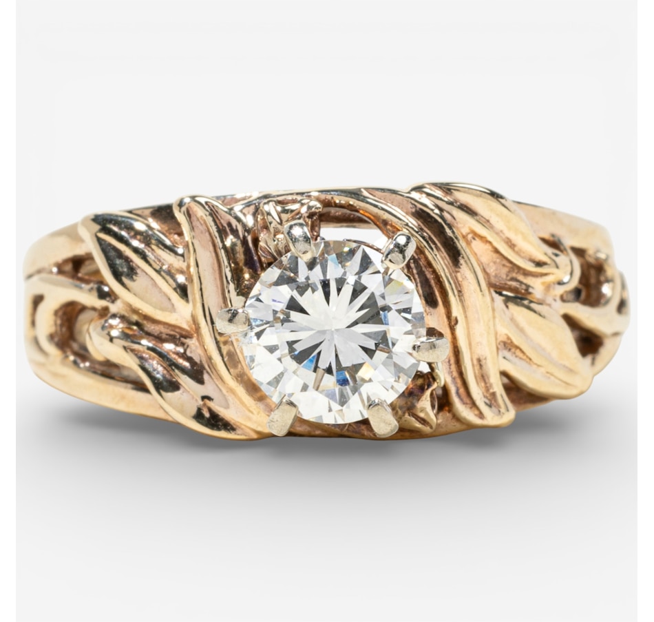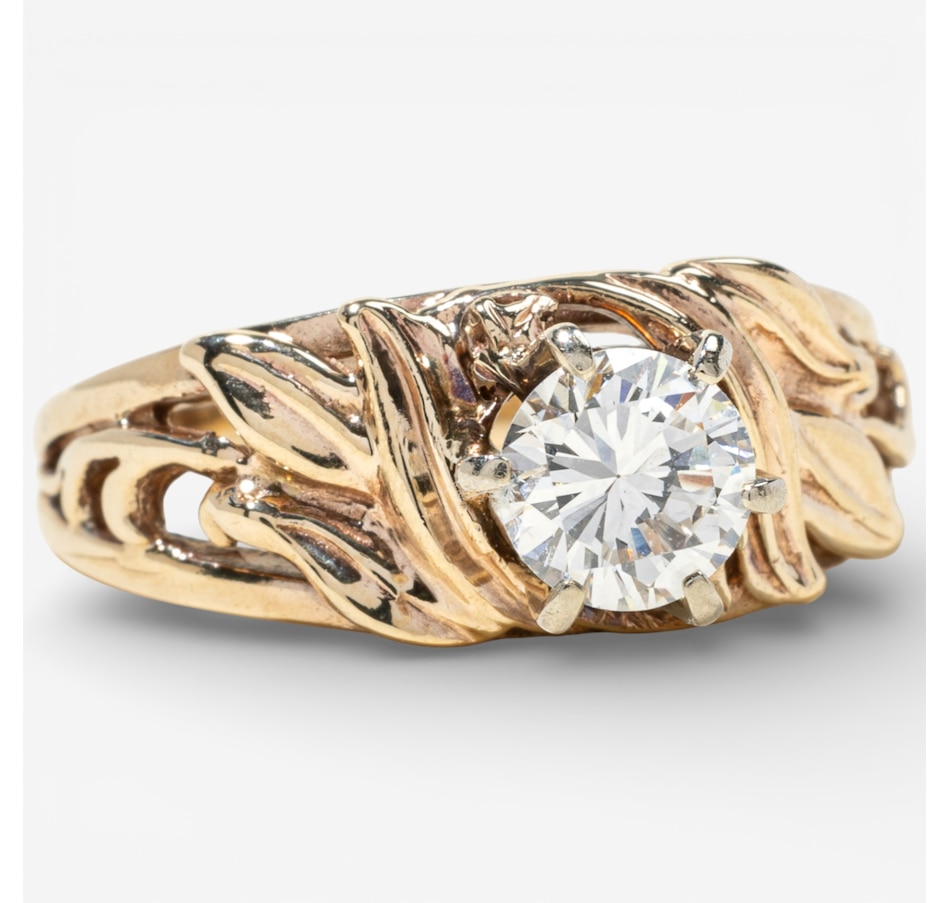14K Yellow and White Gold 0.70-Carat Leaf Motif Diamond Solitaire Ring