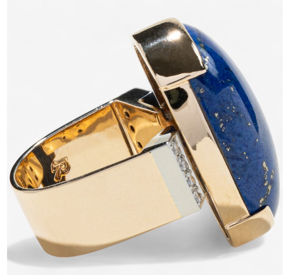 14K Yellow and White Gold 19.78-Carat Lapis Lazuli and Diamond Ring