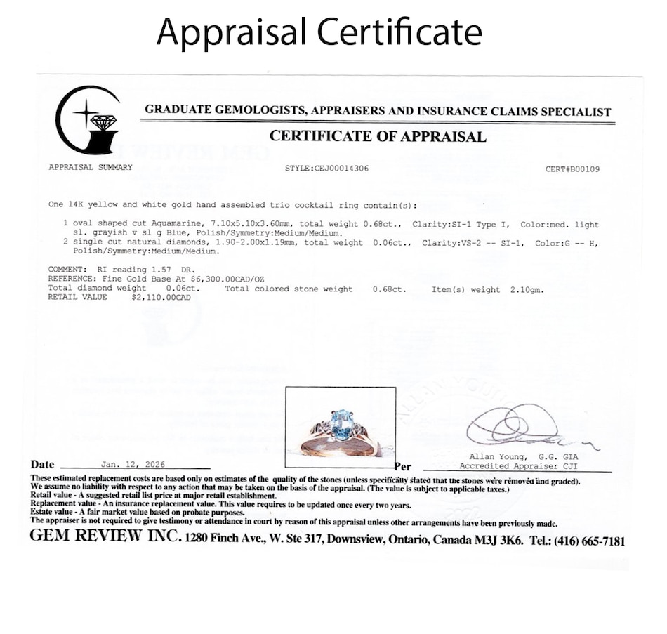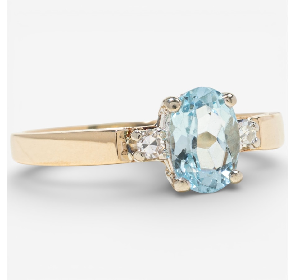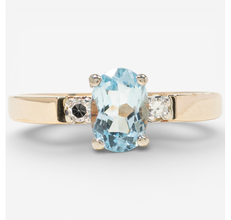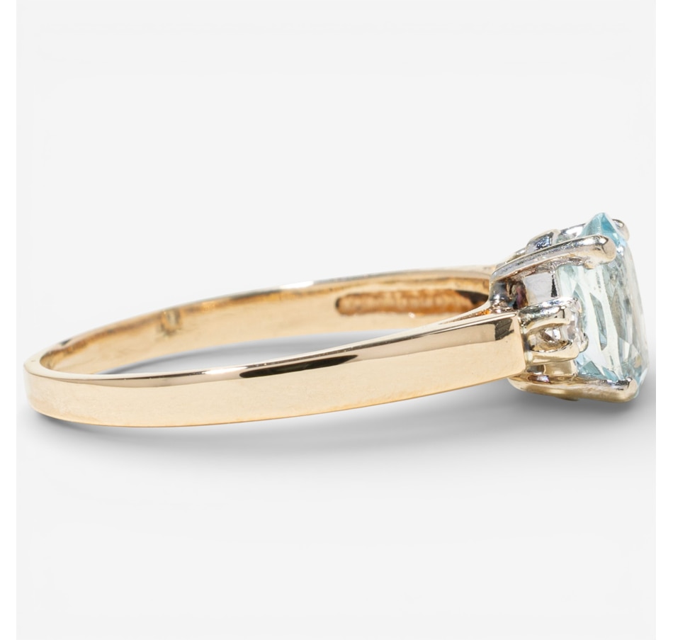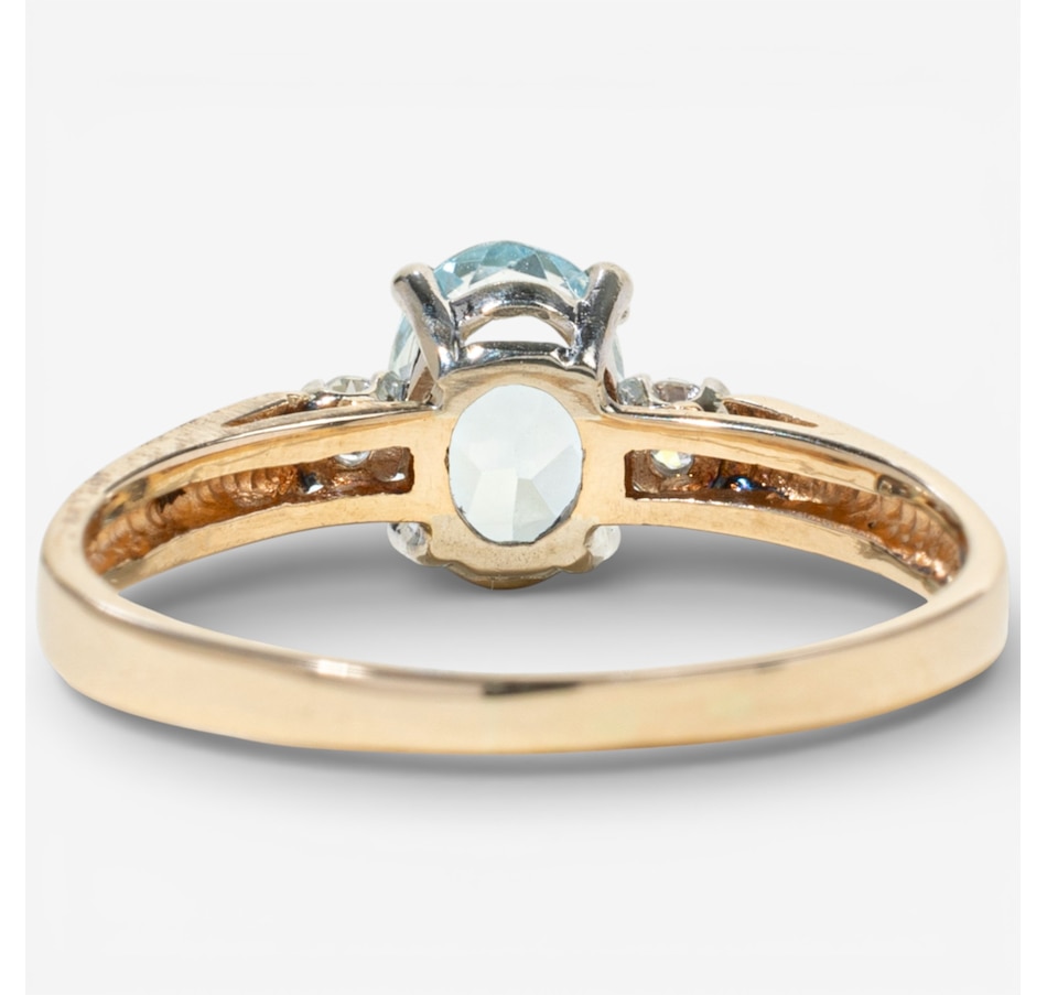 14K Yellow and White Gold Aquamarine and Diamond Ring