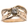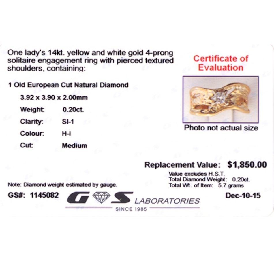 • Estate Originals 14K Yellow and White Gold Organically Pierced Wave Designed .20 Carat Old European Cut Diamond Solitaire Ring