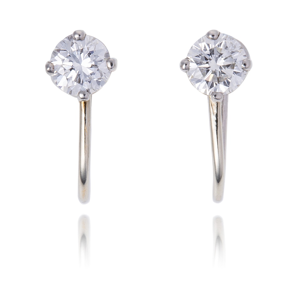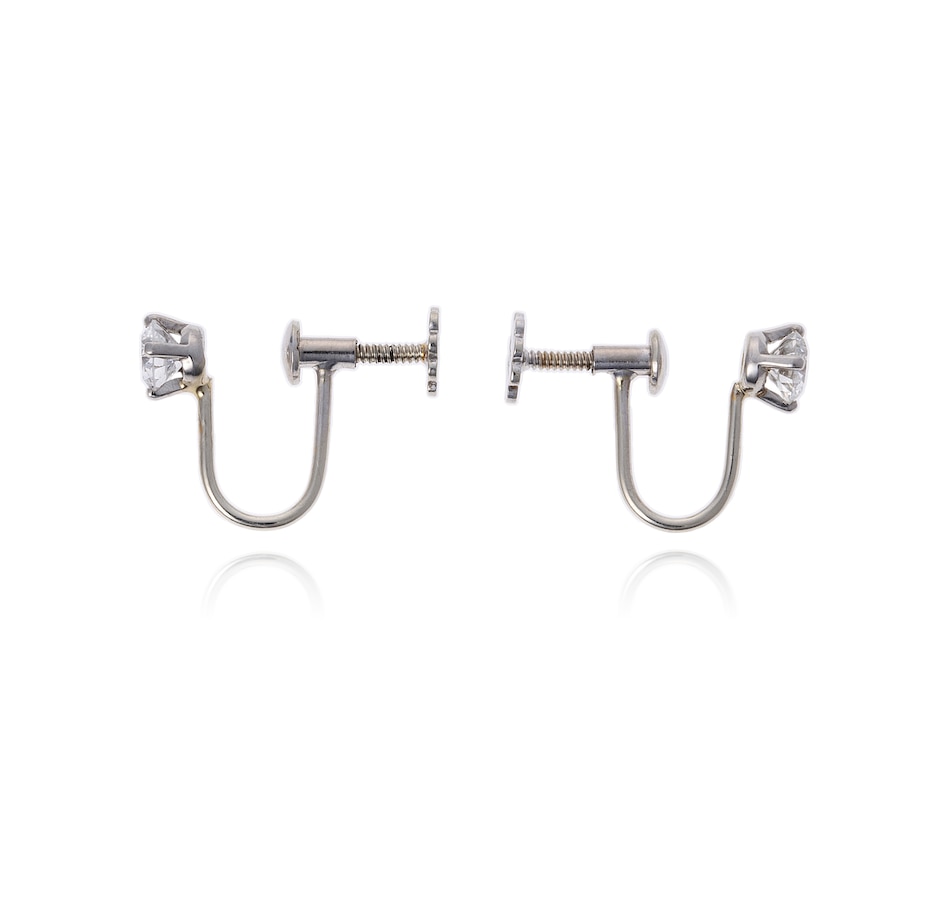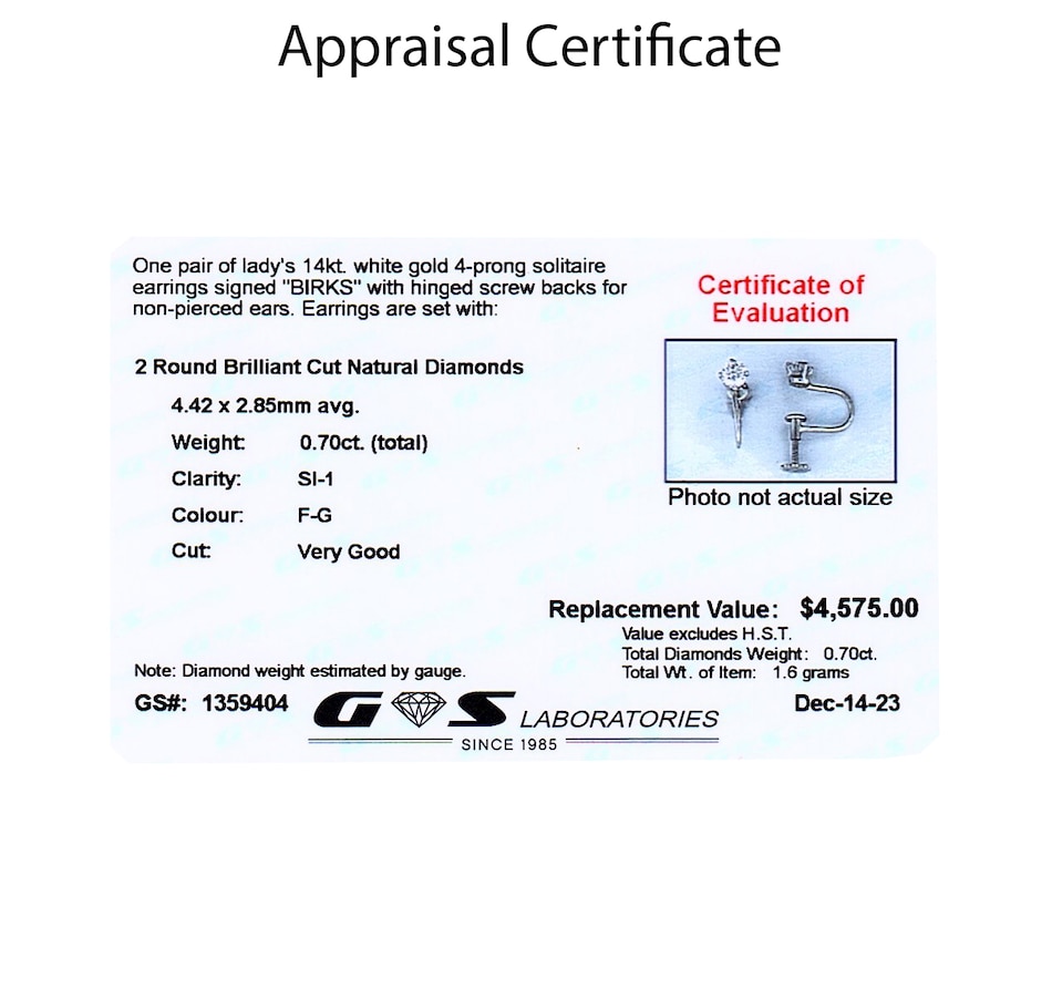 14KT White Gold 4-Prong 0.70 av. ctw Diamond Earrings with Hinged Screw Backs for Non-Pierced Ears, Signed "Birks"