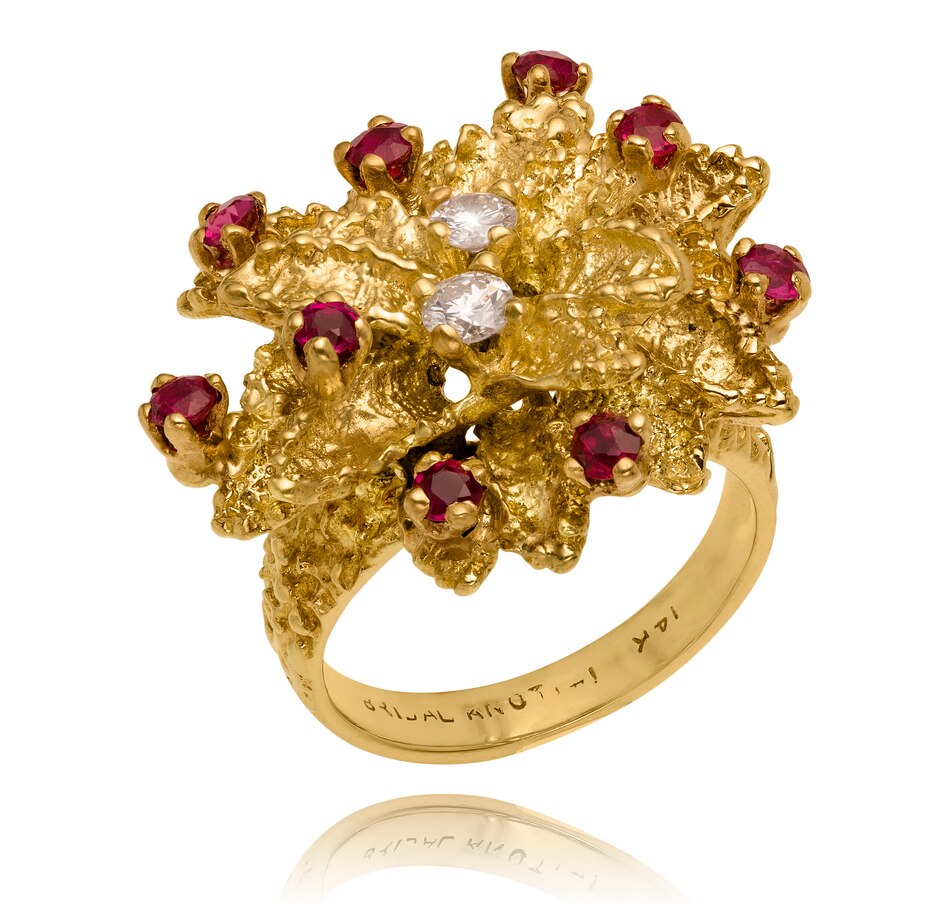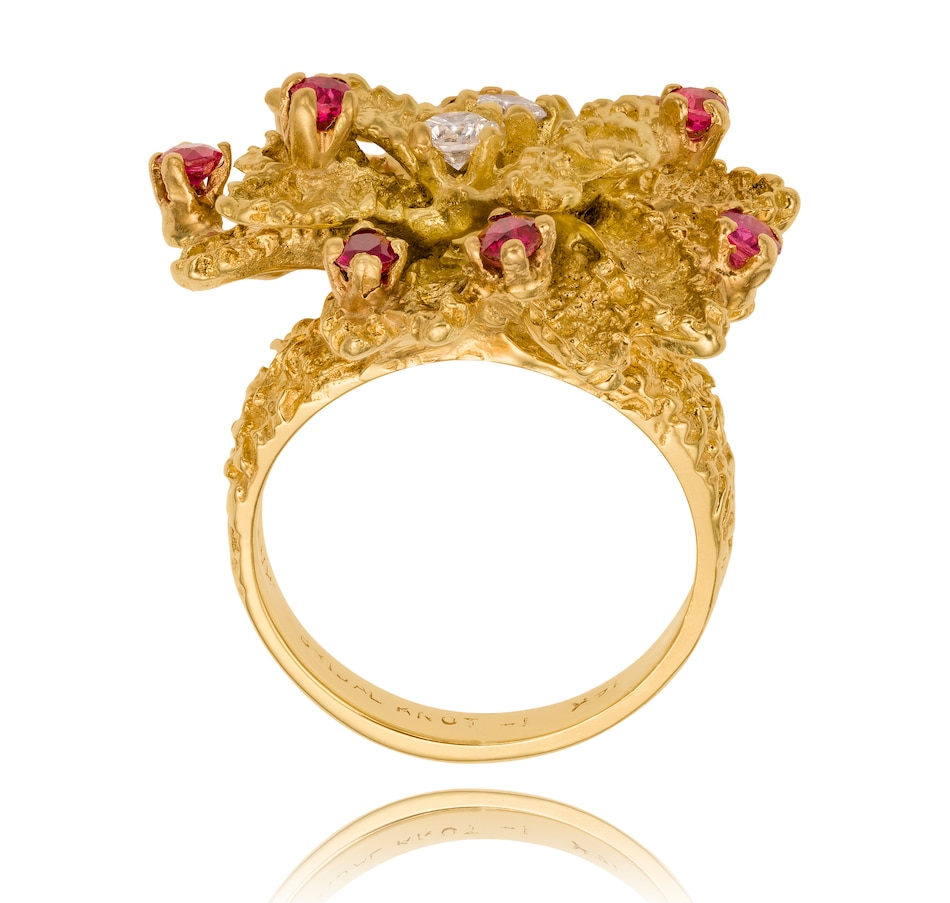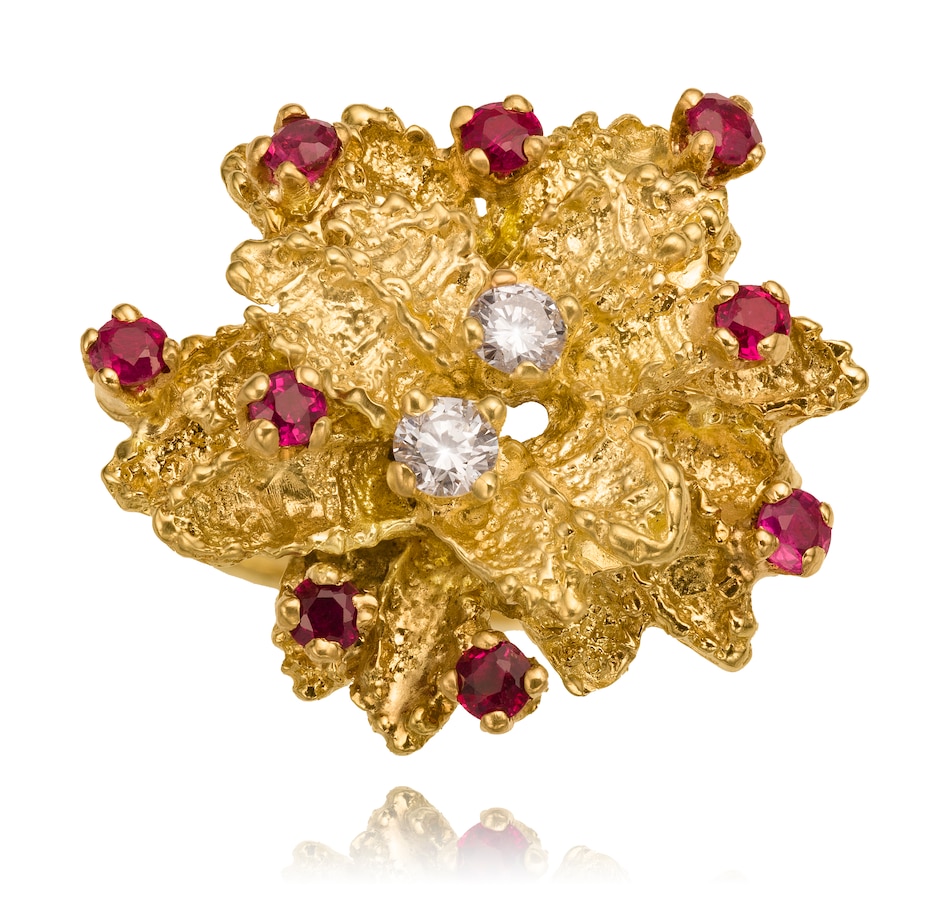 14KT Yellow Gold Ruby and Diamond Cluster Style Floral Ring