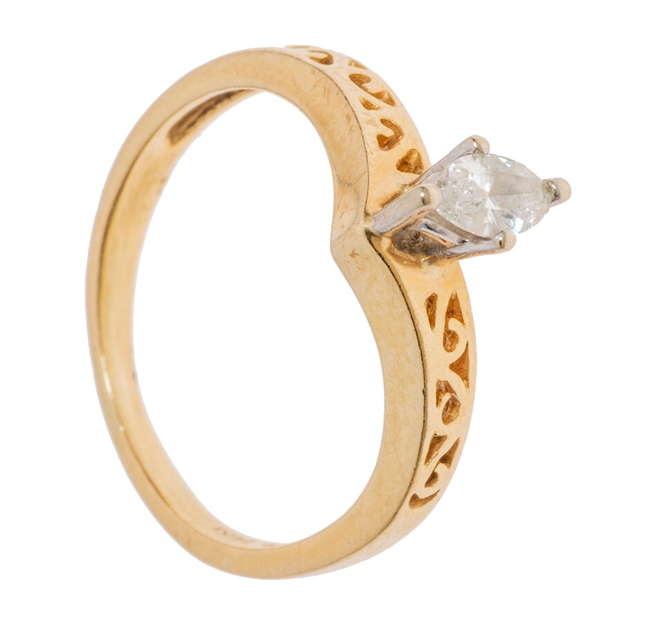 14KT Yellow and White Gold .16 Carat Marquise Shaped Diamond Chevron Ring
