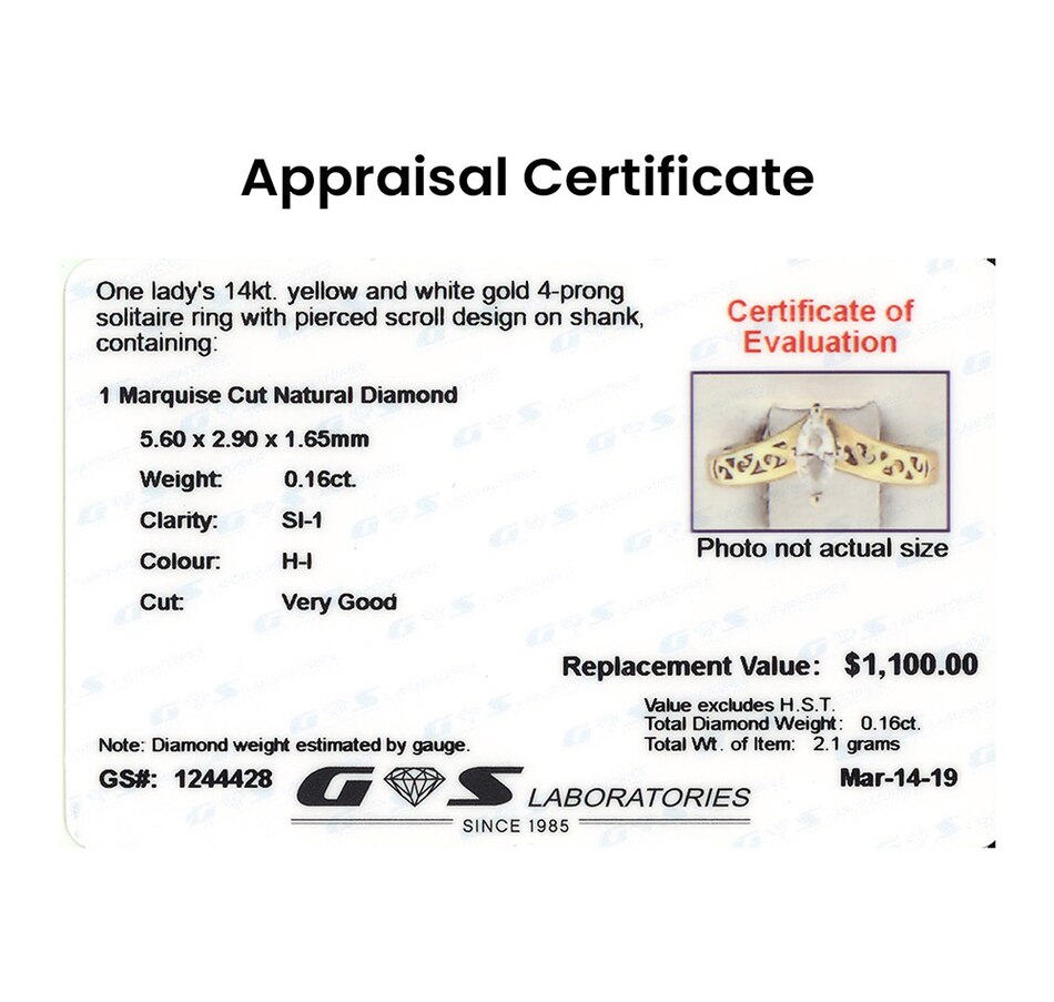 • 14KT Yellow and White Gold .16 Carat Marquise Shaped Diamond Chevron Ring