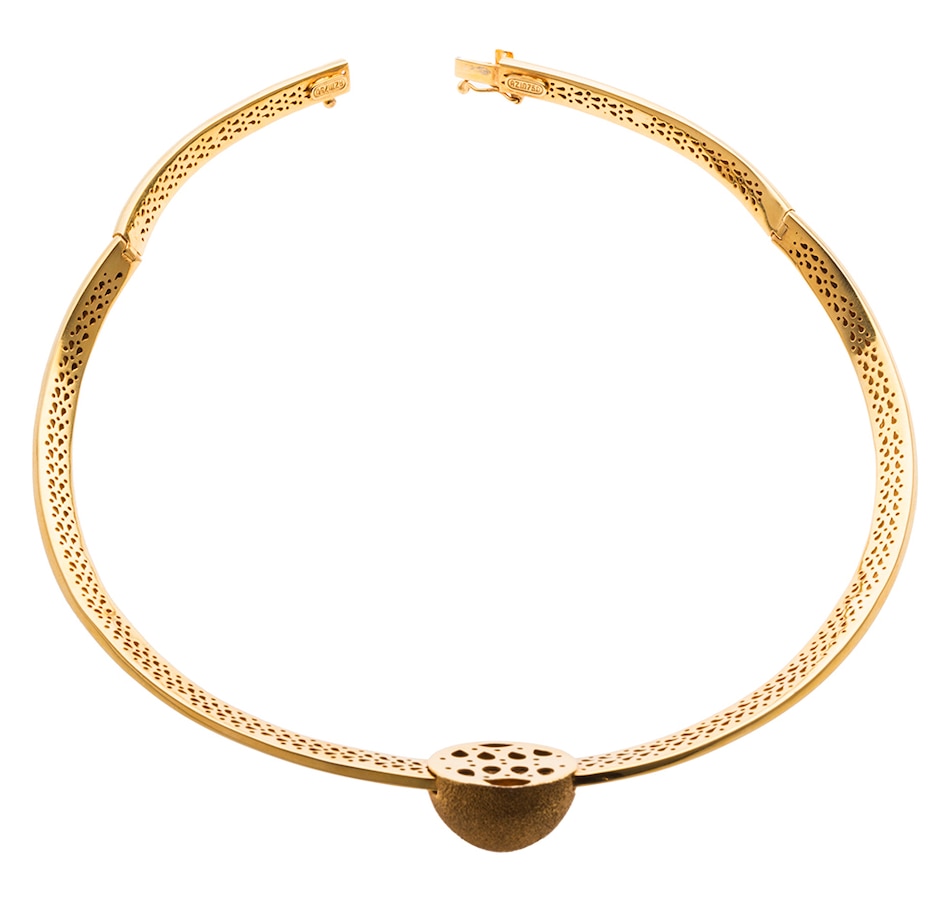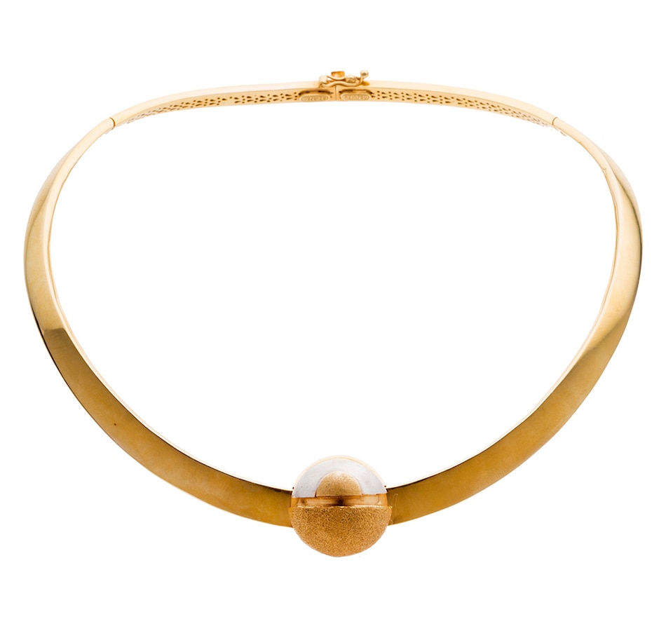 • 18K Designer 'Azin' Yellow and White Gold Dome Collar Necklace with Textured Finish