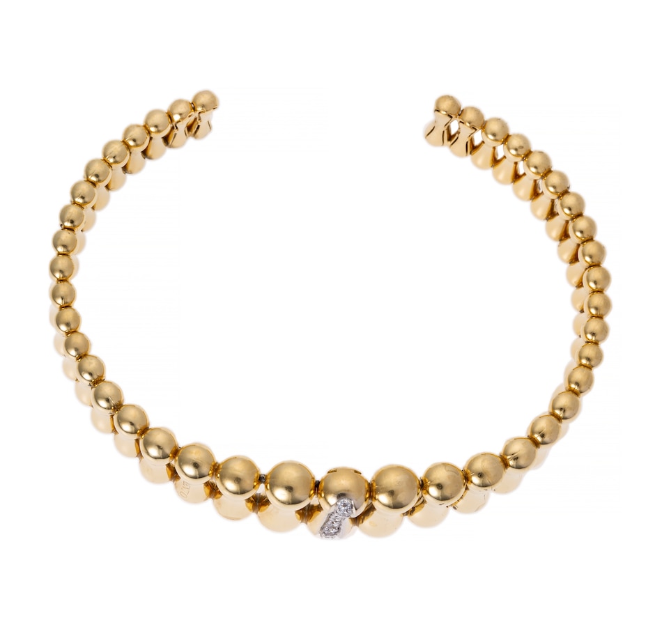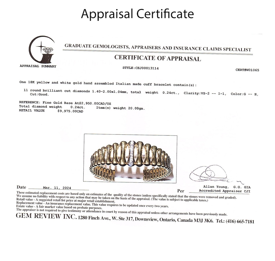 18K Italian Made Yellow and White Gold Diamond-Set Cuff Bracelet