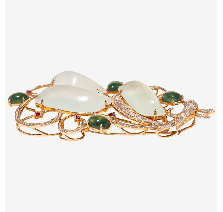 The reverse of the piece is thoughtfully engineered with a discreet double loop to allow for elegant wear as a pendant, while a secure vertical trombone clasp transforms it into a refined brooch. Dramatic yet impeccably refined, this one-of-a-kind creation pays homage to the phoenix not only in form but in spirit, merging mythical storytelling with masterful craftsmanship. Ideal for collectors and connoisseurs of nature-inspired high jewellery, this timeless piece embodies grace, power, and renewal.