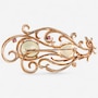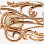 Crafted in luxurious rose gold, this breathtaking brooch-pendant is a true statement piece, inspired by the regal beauty of a peacock in full display. Designed to be worn as either a brooch or pendant, it marries fluid form with exquisite gemstone detailing. At the top, a high-polished, curved shape evokes the elegant arch of a peacock’s head, complete with a high-polished gold crest and single ruby eye that adds a subtle spark of colour.