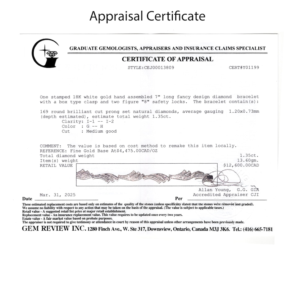 18K White Gold 1.35 Carat Diamond Wave Bracelet