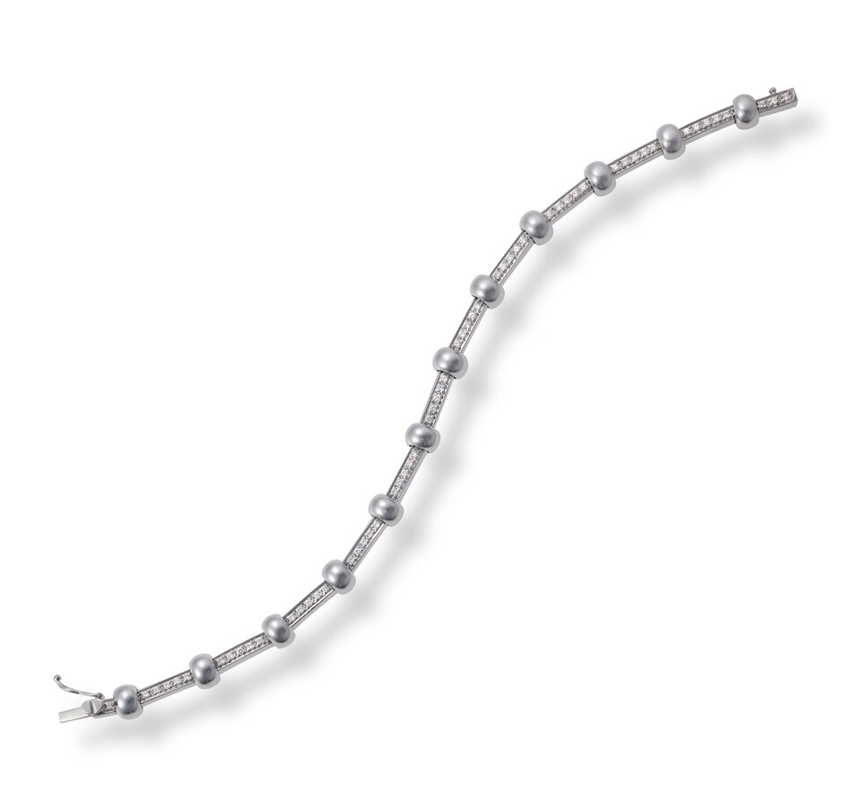 18K White Gold Diamond-Set Bar and Alternating Bead Line Bracelet