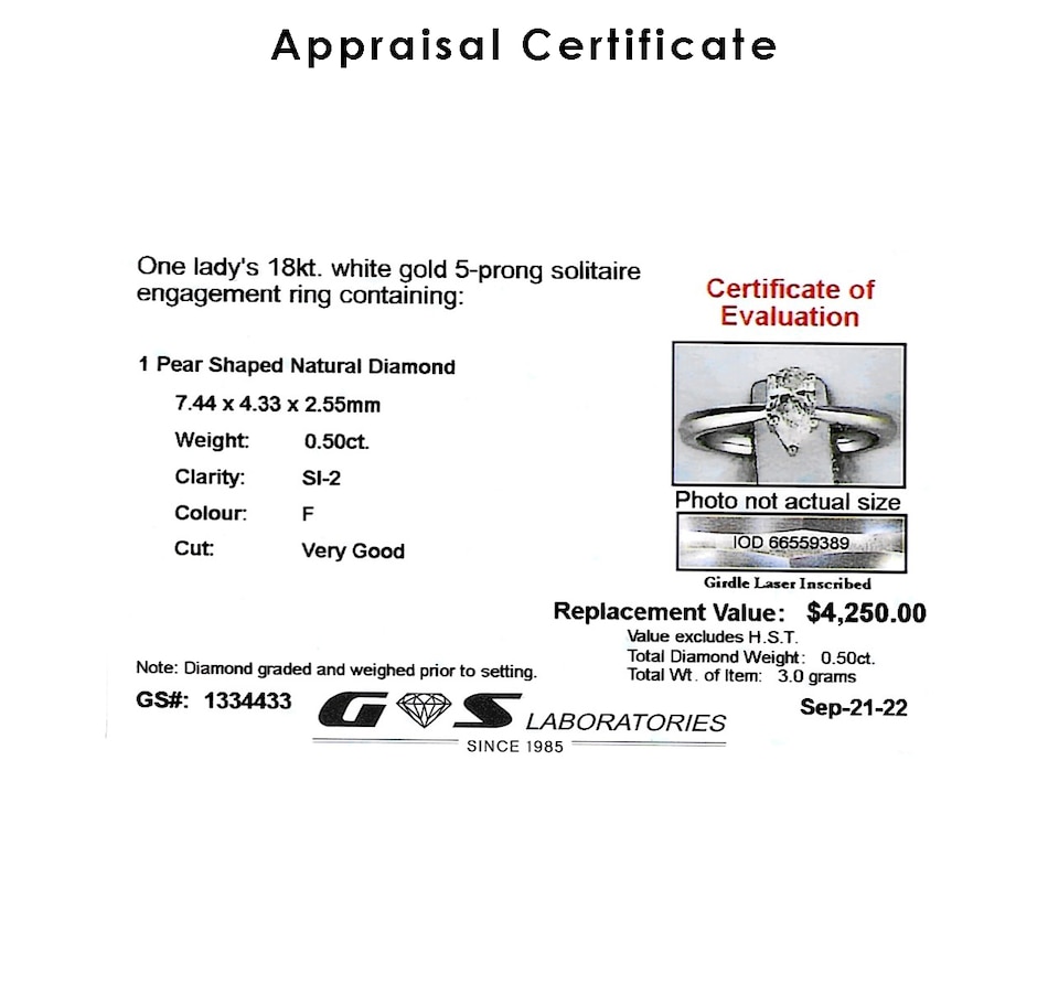 18K White Gold Half-Carat Pear-Shaped Diamond Engagement Ring