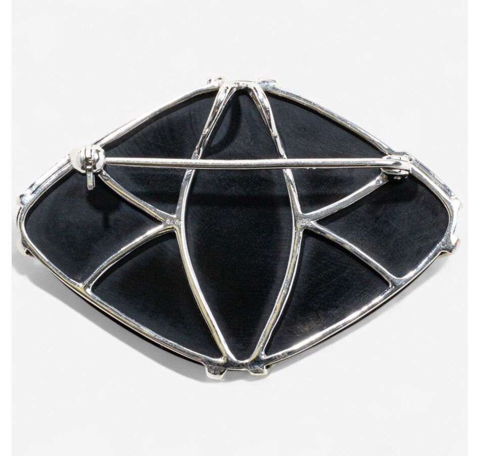 • (1) 45 mm x 30 mm navette-shaped, cabochon-cut black onyx