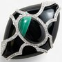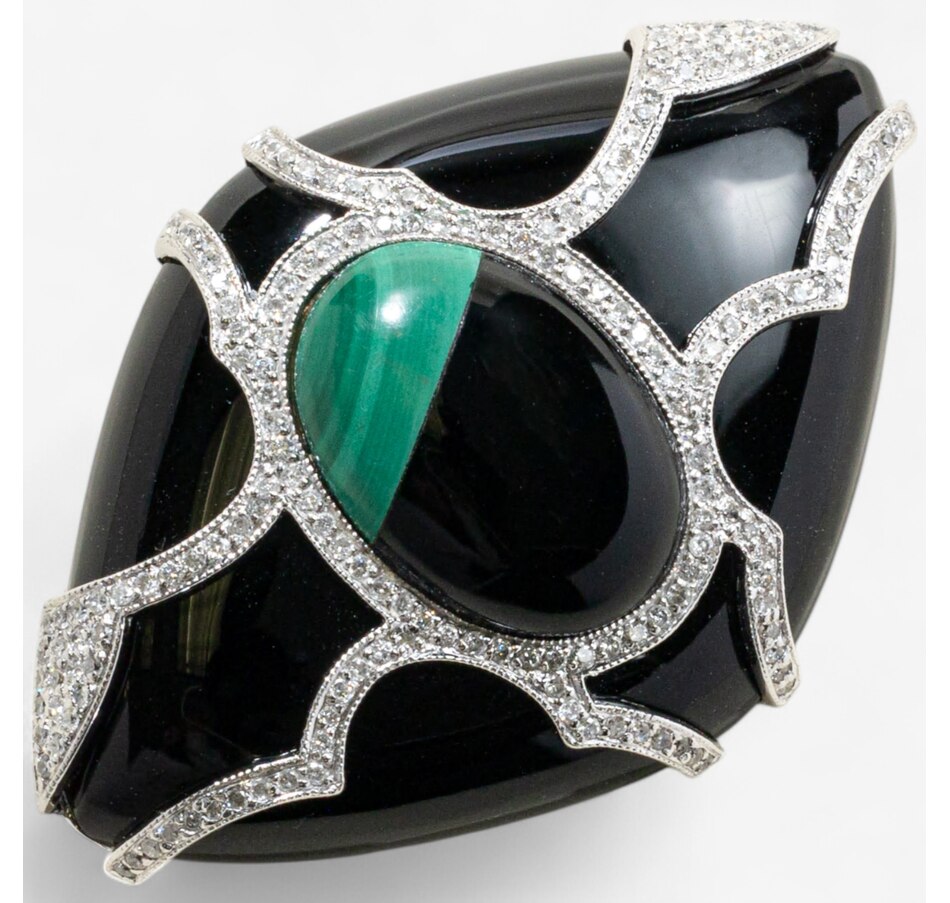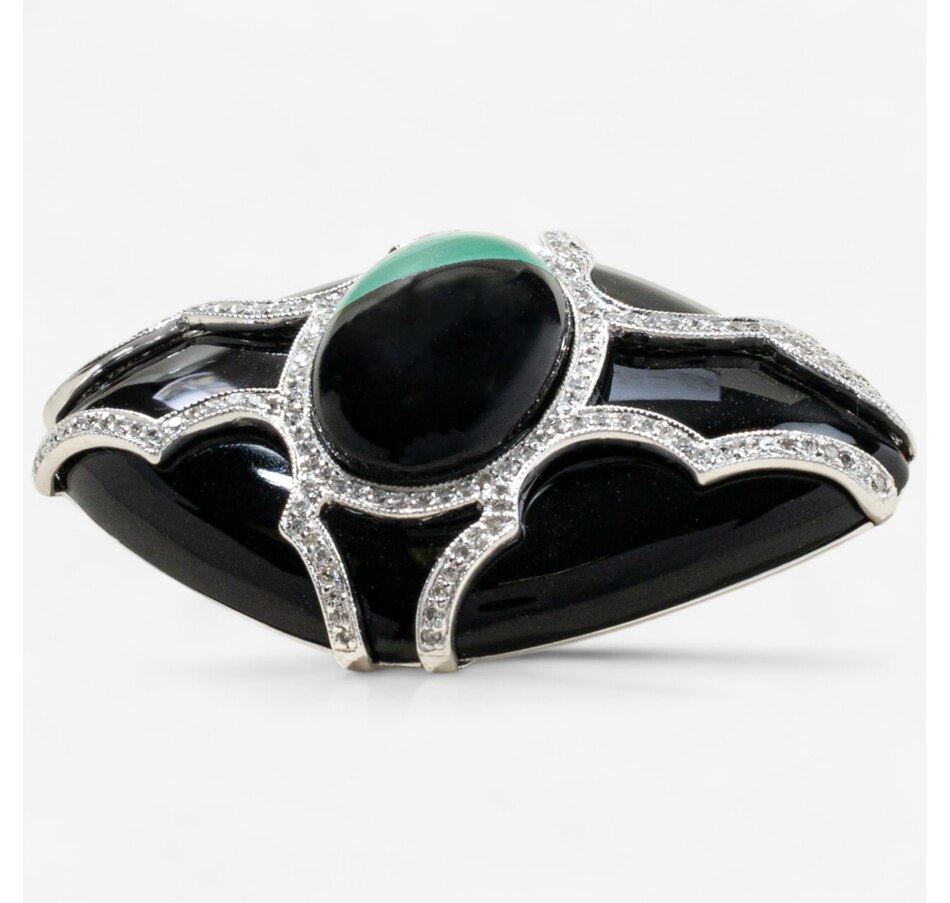 18K White Gold Malachite and Onyx Art-Deco Brooch/Pendant