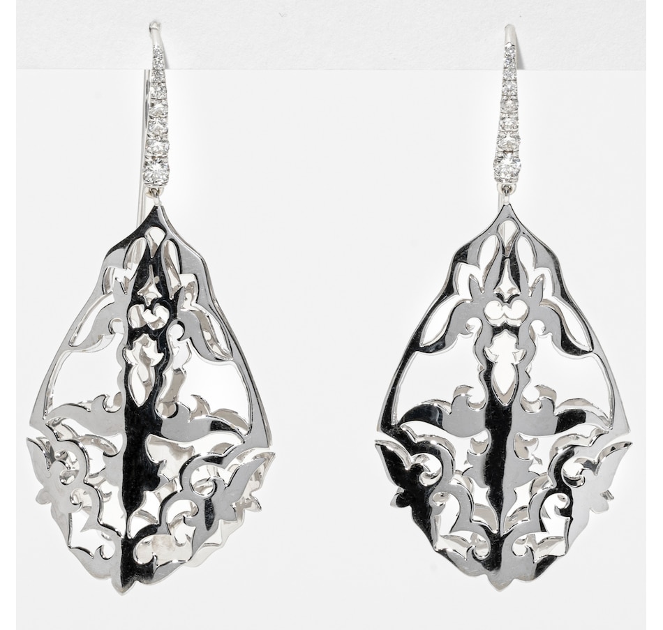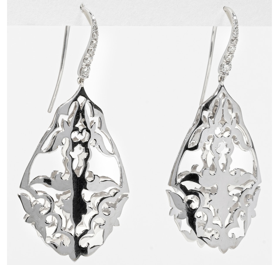 18K White Gold Pierced Drop Earrings with a Diamond-Set Fish Hook Back