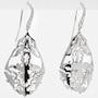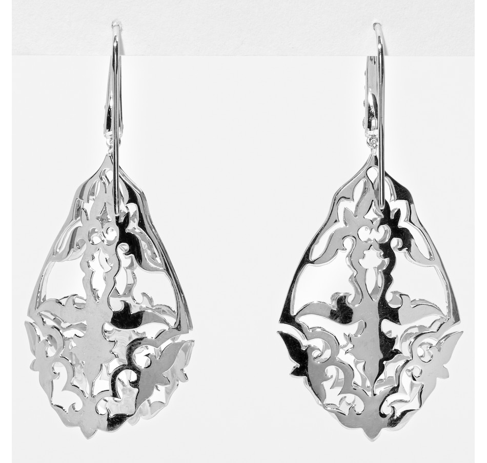 The drop is composed of two mirror-image, openwork panels that join seamlessly at the top and along the sides, before subtly flaring open at the bottom, giving the earrings a graceful, architectural movement. Each side features a delicately pierced leaf-inspired motif, carefully designed to mirror its opposite. This symmetry creates stunning visual clarity, allowing the natural elegance of the pattern to be visible from any angle while enhancing the piece's dimensionality and texture. Elegant and ethereal, these earrings offer an exquisite balance of structure and fluidity.