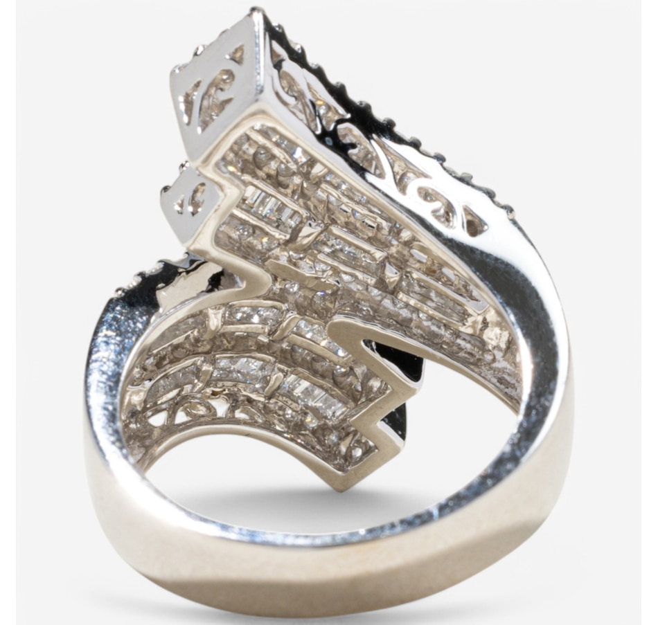 18K White Gold Round and Baguette-Cut Diamond Bypass Ring