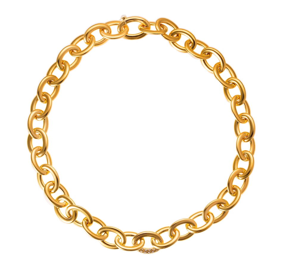 18K Yellow Gold 16" Open Oval Link Necklace with Centre Diamond Link
