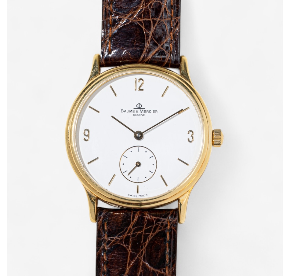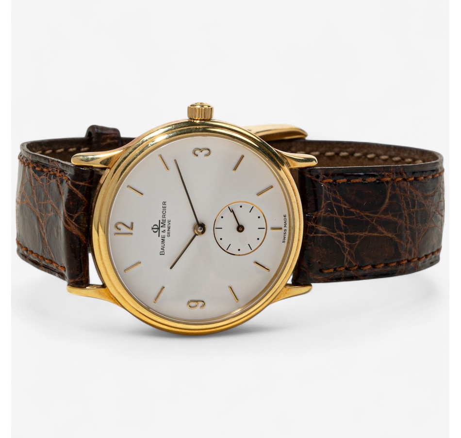 18K Yellow Gold BAUME & MERCIER Swiss Made Wristwatch with Leather Band