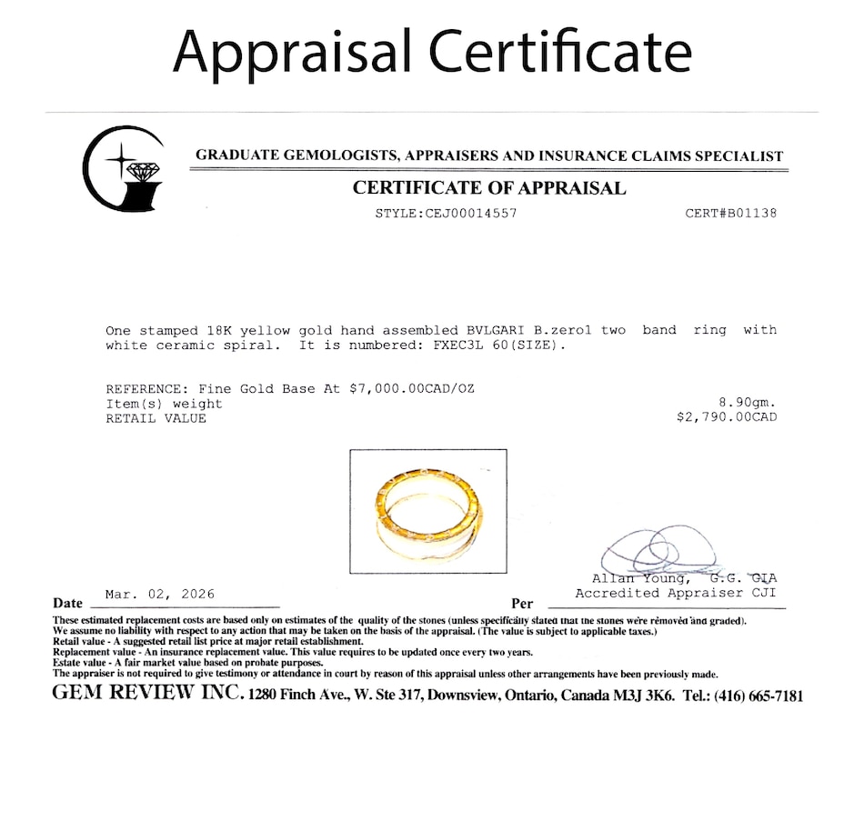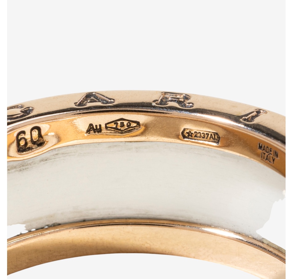 Bold yet refined, this striking BVLGARI B.zero1 two band ring unites classic luxury with contemporary flair. Crafted in brilliant 18K yellow gold, the design features two parallel bands bridged by a distinctive white ceramic spiral that wraps around the finger in a modern echo of BVLGARI’s architectural heritage. The interplay of warm gold and cool ceramic creates a dynamic contrast that is both eye catching and wearable. The white ceramic element, highly durable and resistant to scratches, is integrated seamlessly into the iconic B.zero1 spiral, adding a fresh, modern edge to this celebrated design. The smooth, uninterrupted flow of the spiral recalls the movement of a coiled ribbon, offering a sculptural quality that distinguishes it from traditional multi‑band rings.