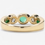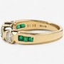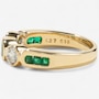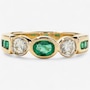 18K Yellow Gold Bezel Set Emerald and Diamond Three-Across Ring with Shoulder Emeralds