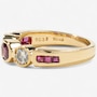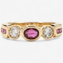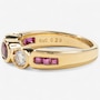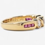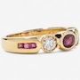 18K Yellow Gold Bezel Set Ruby and Diamond Three-Across Ring with Shoulder Rubies