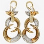 These graceful 18K yellow gold drop earrings showcase an artful interplay of movement, symmetry, and sparkle. Designed with French back closures for secure and comfortable wear, each earring begins with a sculptural top motif: a graceful, asymmetrical swirl whose form resembles an open circle, one side curving outward, the other curling inward without fully closing. This top element is pavé-set in white gold with five round brilliant cut diamonds, enhancing its fluid silhouette with radiant brilliance. An elongated connector link provides gentle articulation and leads to the second motif, echoing the same swirl shape but curving in the opposite direction. It is also is set with five pavé diamonds, creating a harmonious mirrored flow through the design. The final drop element expands upon the initial motif, larger in scale, subtly overlapping the middle swirl, and adorned with twelve pavé diamonds. This layered composition adds depth and dynamic elegance, allowing the earrings to catch light from every angle. The companion earring mirrors the design in reverse, forming a right and left pair that frames the face beautifully and emphasizes the earrings’ sculptural balance. In total, the earrings feature 44 round brilliant cut diamonds, with a combined weight of 1.14 carats.