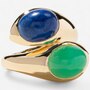 18K Yellow Gold Lapis Lazuli and Green Chalcedony Bypass Ring