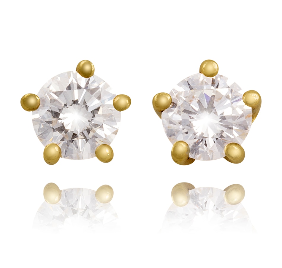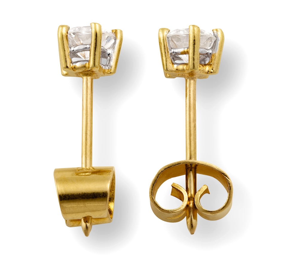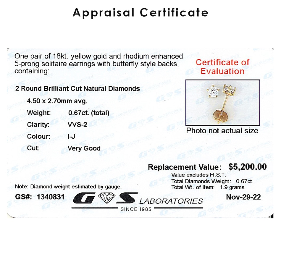 18K Yellow Gold and Rhodium Enhanced 0 .67 av. ctw 5-Prong Diamond Stud Earrings