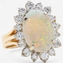 18K Yellow and White Gold 3.25 Carat Opal and Diamond Cluster Ring