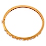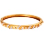 The beauty of bangles is that there are so many marvelous designs and you can wear quite a few at a time. This chic contemporary 18K gold bangle gleams with raised paisley and circular white gold appliqués, each set with round, brilliant-cut diamonds, accented in dashing diagonal zebra-stripe fashion. The bangle portion is crafted in yellow gold and features a soft satin finish throughout. A hidden hinge and figure-eight safety latch is located on the side.