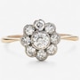 18K Yellow and White Gold Old European Cut Diamond Cluster Ring