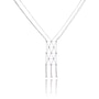 18KT White Gold 3-Strand Box Link Lariat Necklace with an Elongated Geometric Diamond Accented Drop