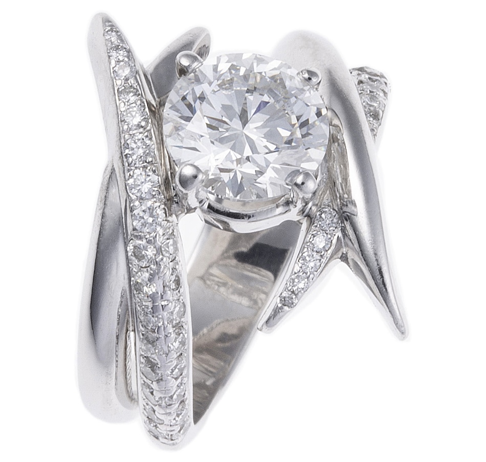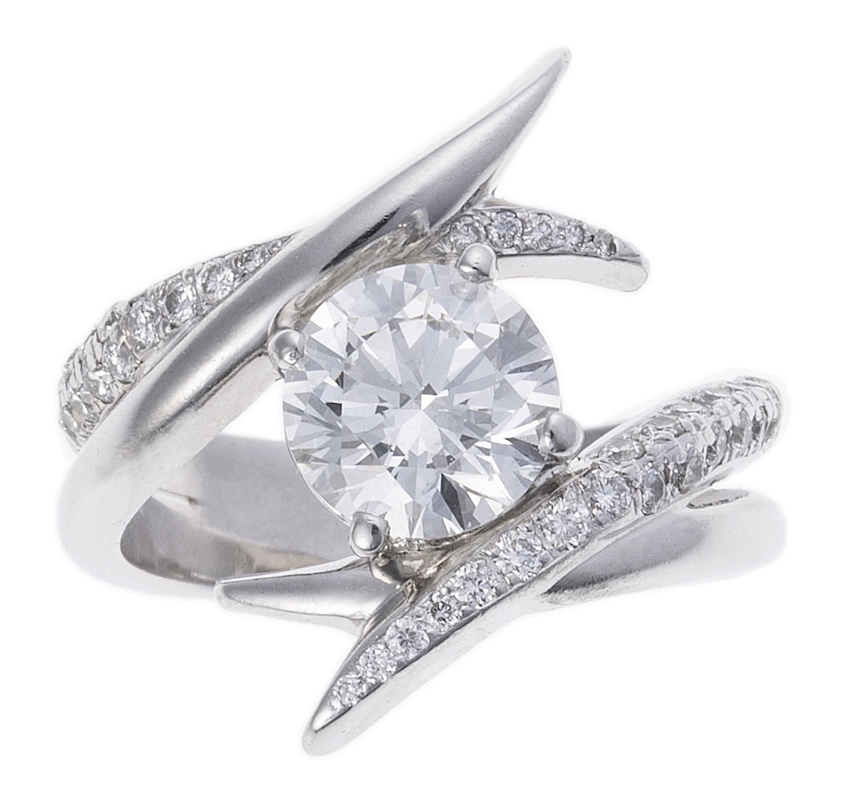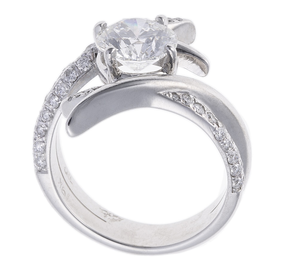 19K White Gold Fancy Bypass Ring with a 1.56 Carat Diamond Solitaire