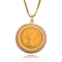 • Gold fineness: 22K yellow gold coin, 14K rose and yellow gold gold bezel, 14K yellow gold chain