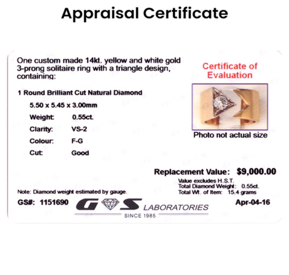 Estate Originals Custom Made 14K 3-Prong .55 Carat Diamond Ring in Geometric Setting
