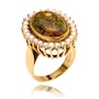 Custom Made 14K Yellow Gold 7.00CT Black Opal and Seed Pearl Ring