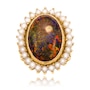 • Specs: (1) oval shaped cabochon cut black opal (7.00ct), (26) round shaped seed pearls (2.30mm to 2.50mm)