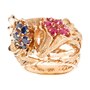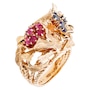 Custom Made 14K Yellow Gold Flower Ring with Synthetic Rubies and Sapphires