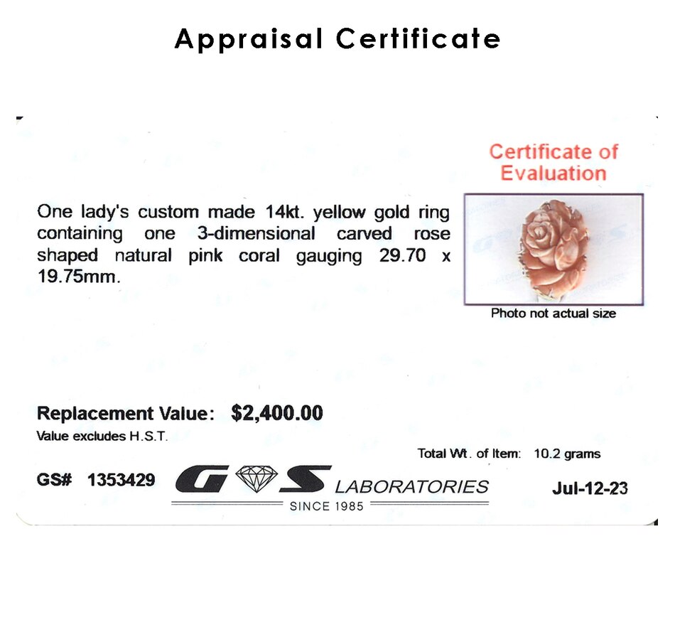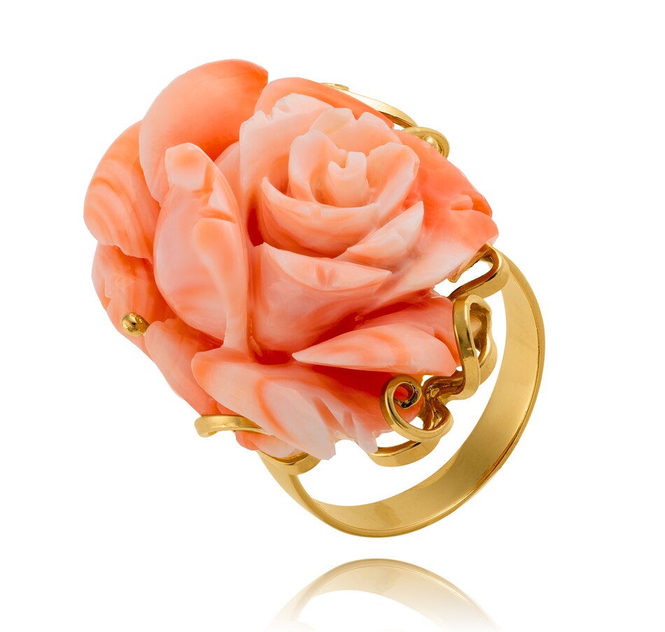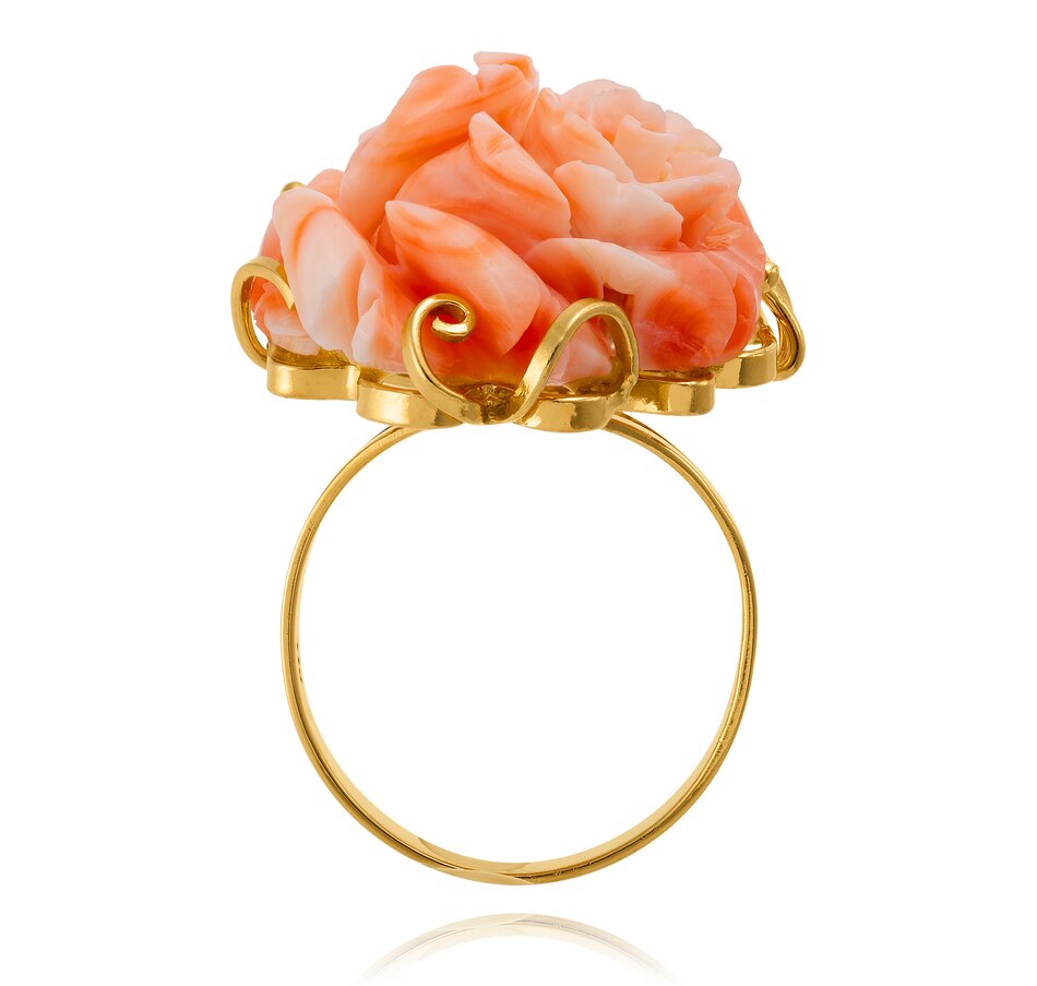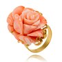 Custom Made 14K Yellow Gold Three-Dimensional Carved Rose Shaped Coral Ring