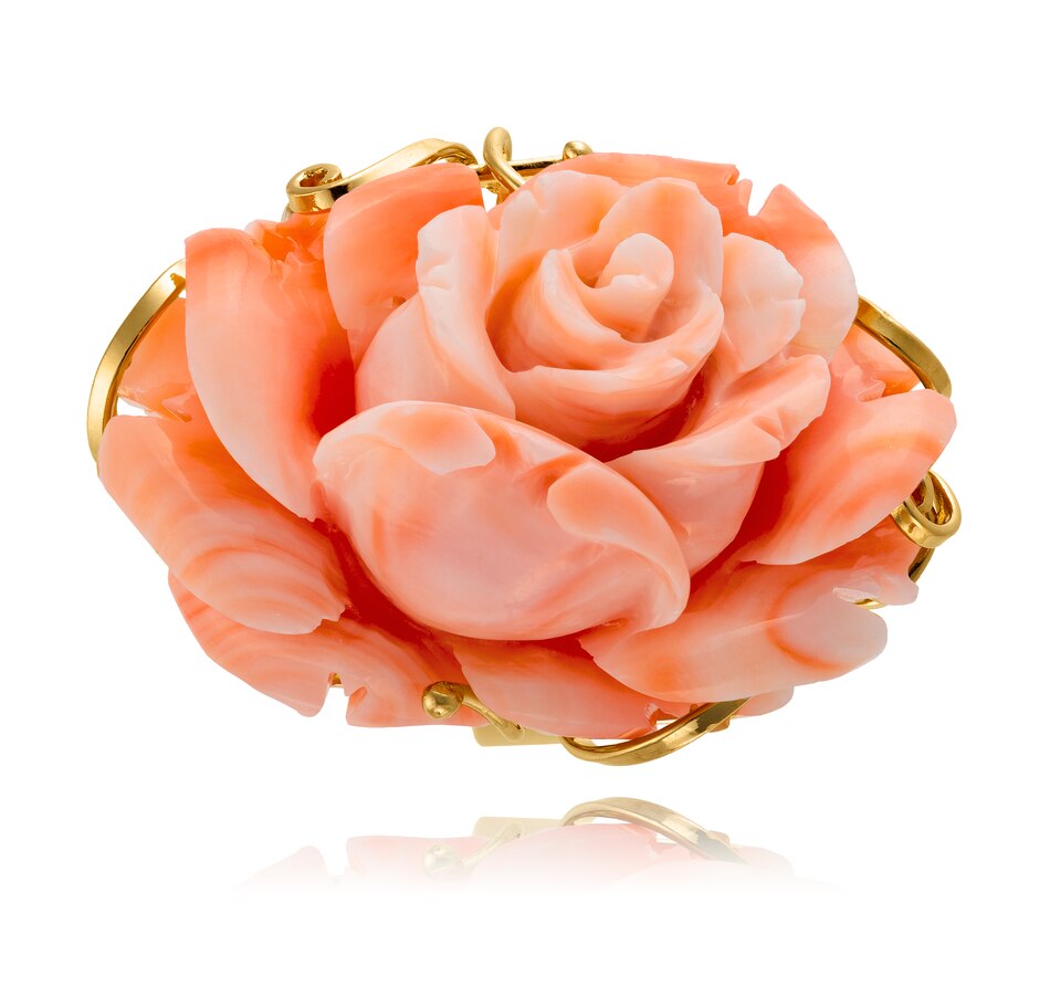 • (1) three-dimensional carved rose shaped pink coral (29.70mm x 19.75mm)