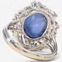 The setting is supported by a sculptural wire band that splits into three graceful strands as it approaches the gallery, cradling the swirl motif and lending strength to the design. This elegant split shank structure enhances both balance and beauty, while the undergallery is thoughtfully engineered to offer structural support and light flow beneath the stones. Both regal and romantic, this platinum star sapphire ring is a celebration of natural rarity and masterful design—an heirloom-quality piece destined to captivate for generations.