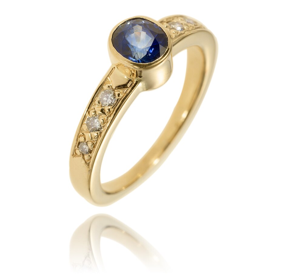 • Estate Originals Custom-Made 14K Yellow Gold Bezel Set Sapphire and Diamond Ring