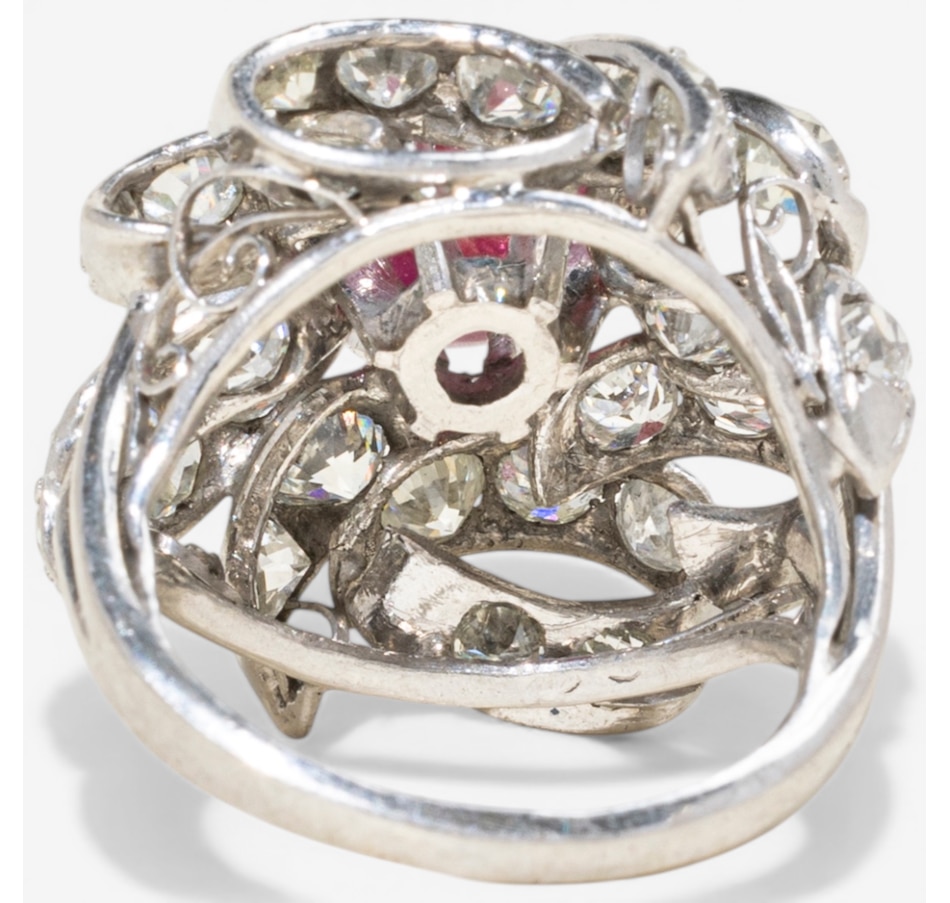 Custom-Made Platinum Vintage Ruby and Diamond Ring