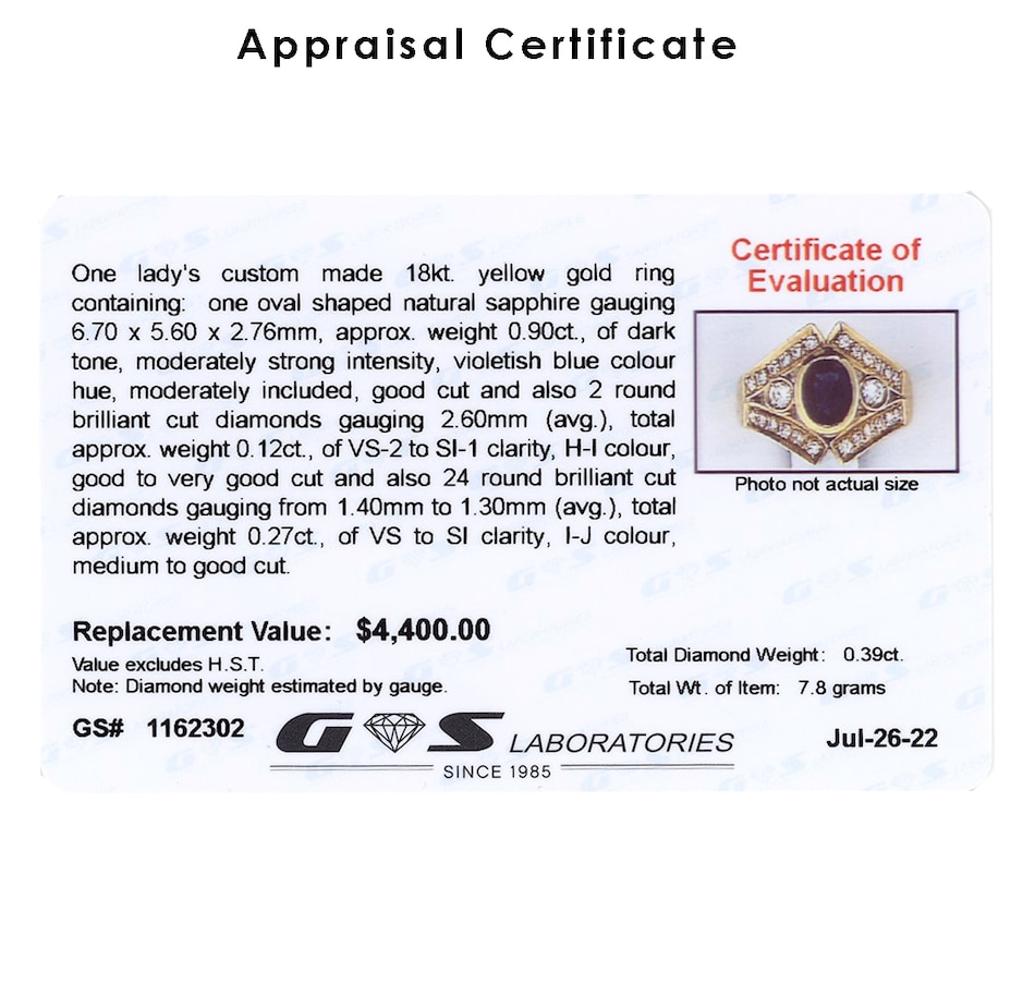 • Estate Originals Custom-Made and Hand-Assembled Bezel-Set Sapphire and Diamond Ring