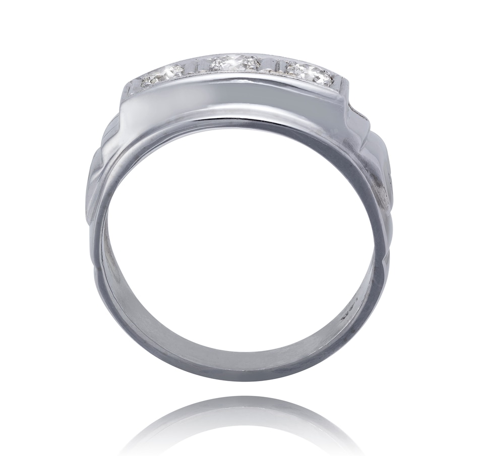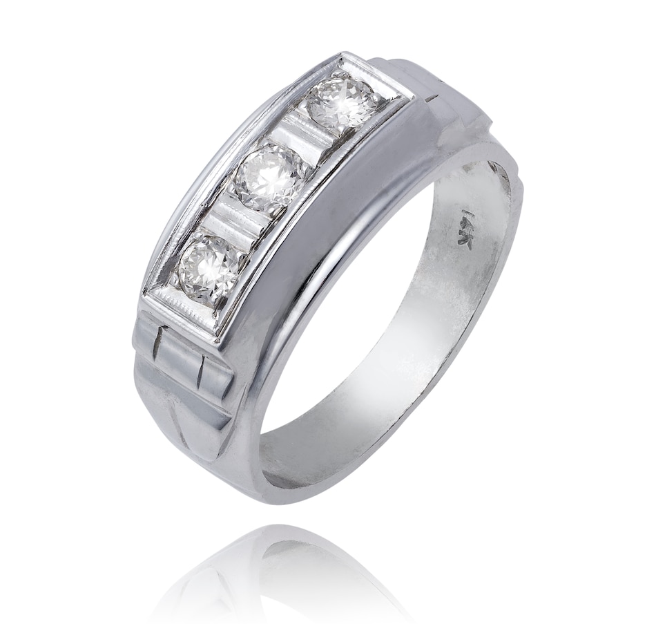 Gentleman's 14K White Gold 3-Stone Diamond Ring