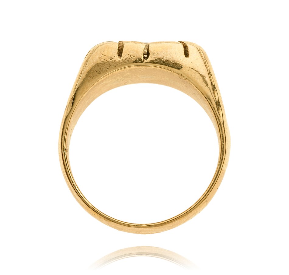 • Estate Originals Gentleman's 14K Yellow and White Gold Nugget Design 3-Stone Diamond Ring